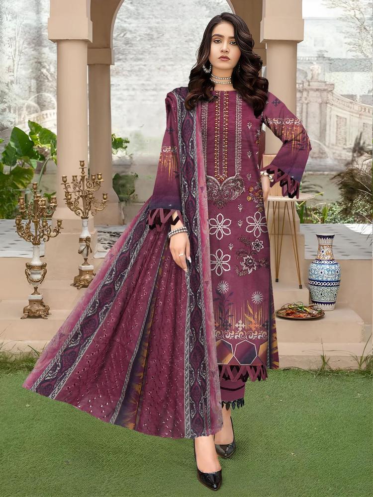 2 Pcs Women's Stitched Arabic Lawn Embroidered Shirt And Trouser
