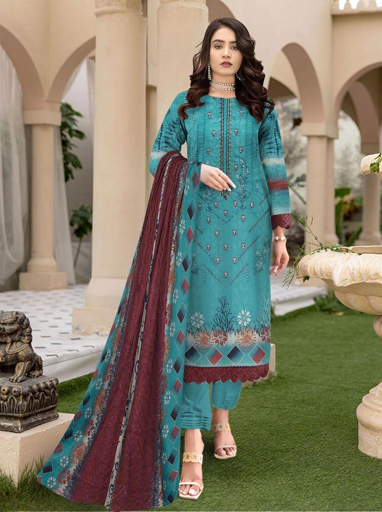 Men's Unstitched Soft Cotton Plain Suit (Shalwar Kameez) Opal Blue Color