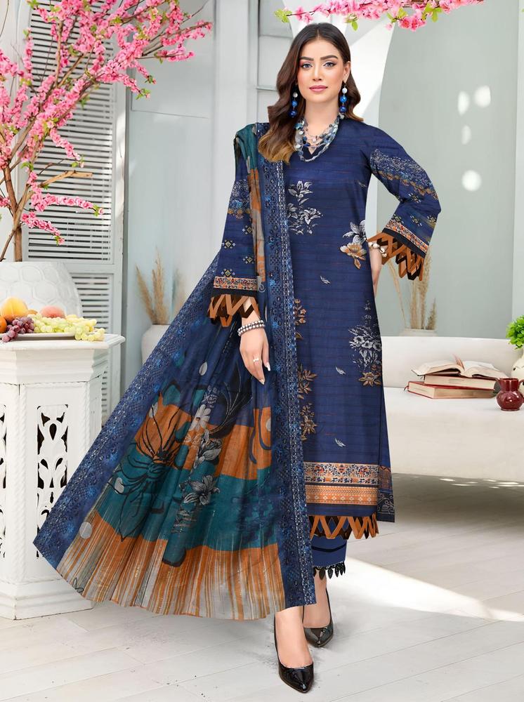 Stunning 3 Pcs Embroidered Khaddar Suit in Blue with Cut Work