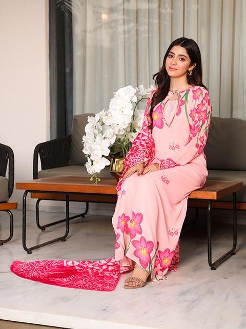 2 Pcs Women's Stitched Arabic Lawn Embroidered Shirt And Trouser