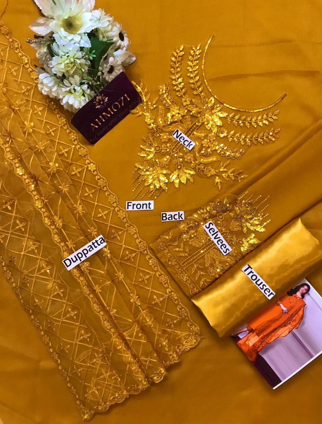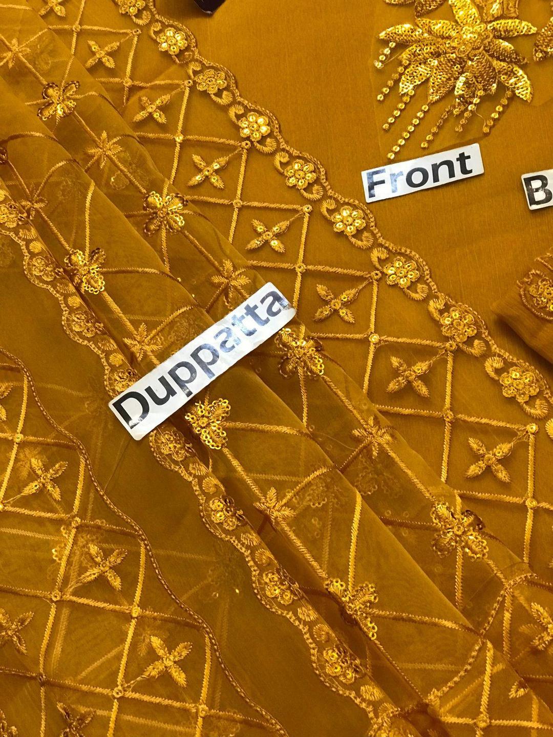 3 Pcs Women's Unstitched Embroidered Suit - Yellow