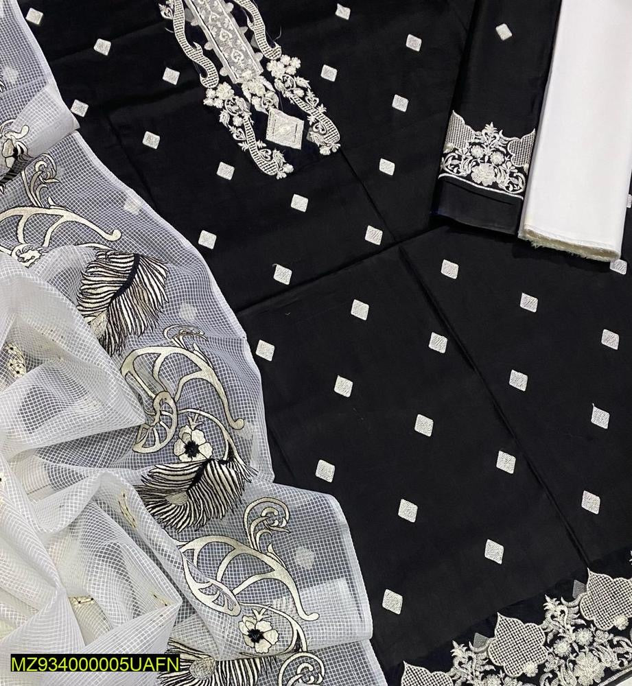3 Pcs Women's Unstitched Lawn Embroidered Suit