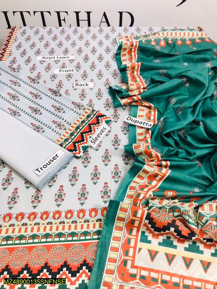 3 Pcs Women's Unstitched Lawn Printed Suit