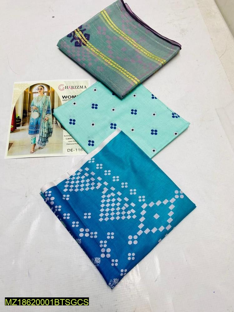 3 Pcs Women's Unstitched Lawn printed Suit - Unstitched & Sky Blue
