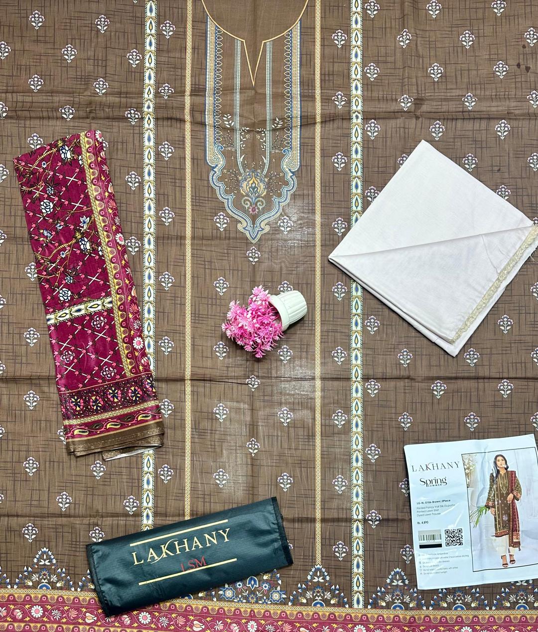 3 Pcs Women's Unstitched Printed Suit - Unstitched Size