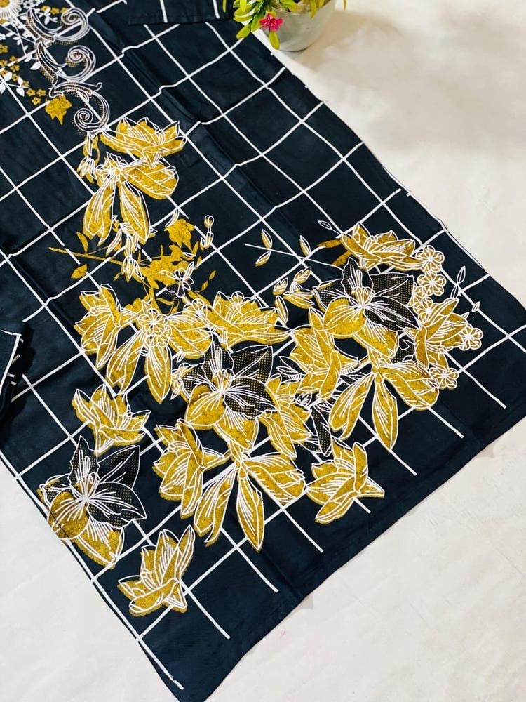 2 Pcs Women's Stitched Lawn Embroidered Shirt with Trouser - Standard Size