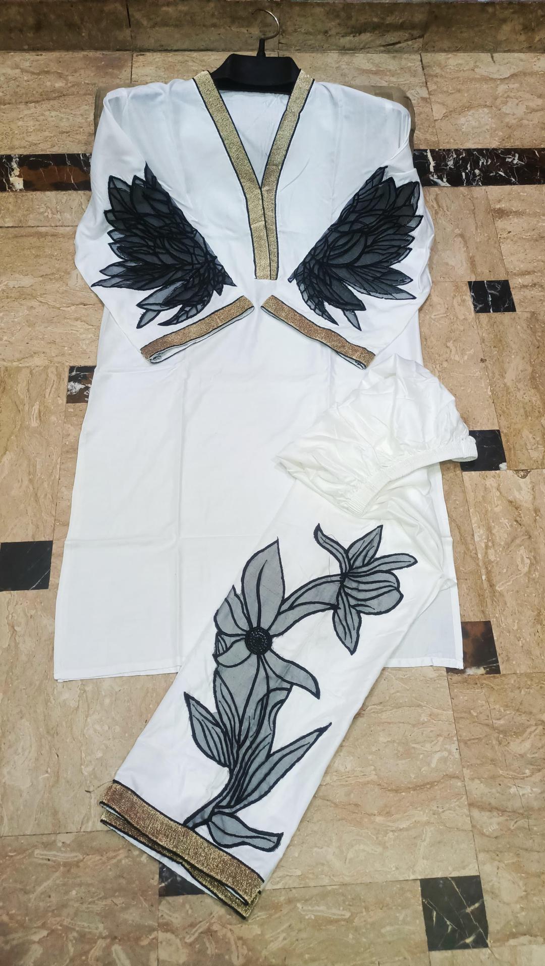 2 Pcs Women's Stitched Linen Patch Work shirt and Trouser