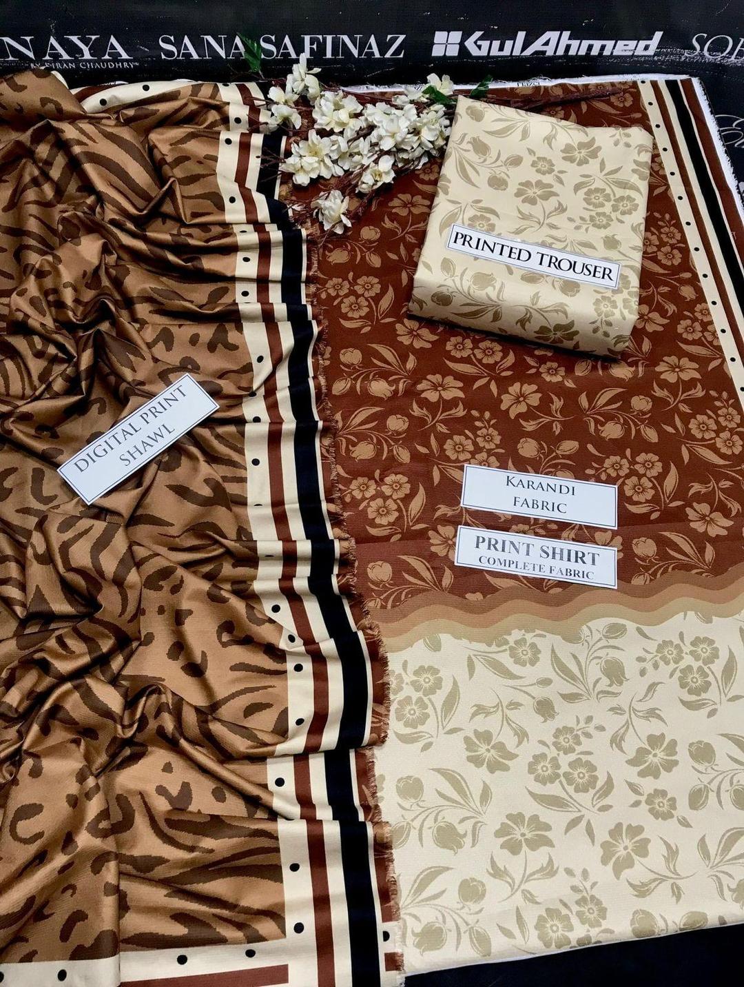 Women's 3 Pcs Ensemble Stylish Organaza Karandi Suit Set with Digital Print - Unstitched Size